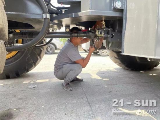 记得有一次,当时大概是晚上8点多,距离客户将近300公里,销售收到客户的反馈,说是装载机的刹车盘磨坏了,当时客户比较着急主要是接下来还要继续干活,虽然小毛病,但是曹老三和同事立刻开着服务车赶完现场,在路上服务车意外坏在高速上,等了几个小时后坐上拖车抵达高速口,销售很给力12点左右在高速口开车过来,我们把工具配件直接转移到到另一个车上。