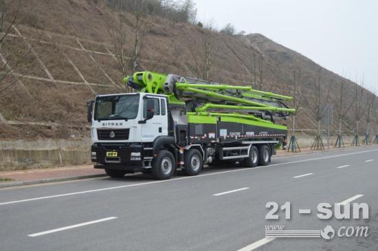 该款产品打破国外技术壁垒,拥有自主知识产权,整车仅46吨,为4桥底盘臂架最长,转弯半径仅有14米,场地适应性更好;经实测,展收臂速度高于行业15%,施工更高效;荣获中国专利金奖的臂架全姿态全工况主动减振技术,令末端振幅可低至±0.2米,打料最稳。搭载1.2米小转台+仿生6节臂,后两节臂“短+短”组合,布料灵活。末端软管在料斗一侧,洗管更便捷。