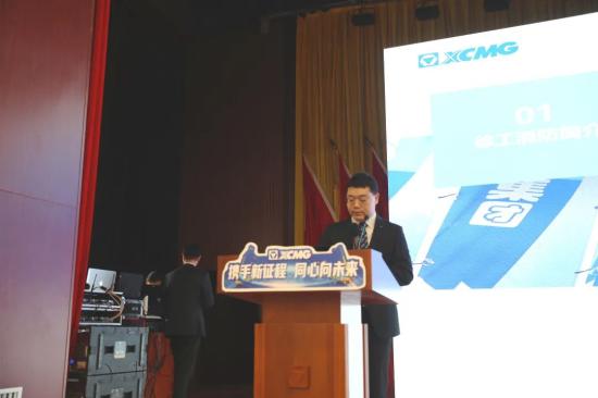 徐工高空作业平台始终致力于打造高机行业第一服务品牌,为客户提供更高效、更便捷、更及时、更优质的服务。会上,徐工消防服务备件中心副总经理朱奔详细阐释了“全身心”金标服务的内涵,系统介绍了服务保障体系打造的措施,郑重宣誓了坚决践行第一服务品牌的承诺。