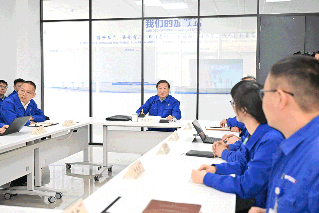 4月17日上午,谭旭光深入到潍柴新能源动力科技有限公司动力电池PACK工厂,与科技工作者共同围绕动力电池(液态锂电池、固态锂电池)、氢燃料电池、固体氧化物燃料电池(SOFC)进行了深入交流。这次调研的主题是紧跟时代节拍,尊重科学规律,确立正确的新能源技术路线。谭旭光与潍柴青年科技工作者展开了热烈的讨论。