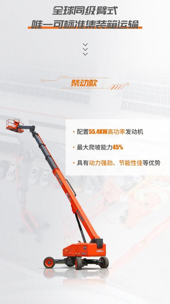 3.小臂变幅角度240°,可回勾,平板车运输可最大化释放多余空间,提升富余货运能力,且整机适用于标准集装箱运输。
