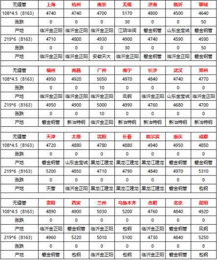 2023年6月6日全国无缝管价格汇总