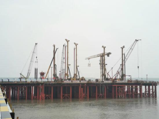 此次施工完成的4号墩基础共采用77根最大桩长138.5米,最大孔径2.8米的钻孔灌注桩,平均入岩深度约110米,对成孔设备性能要求高。