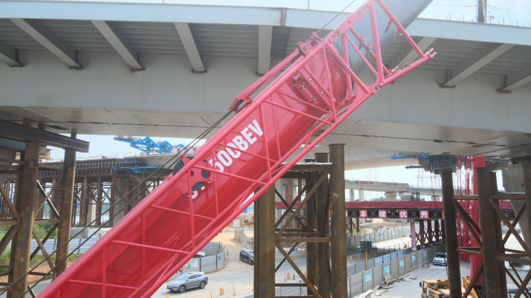 近日,在长沙香炉洲大桥项目的施工现场,1台STC500BEV纯电驱起重机干得热火朝天,与旁边其他设备不同的是,它没有轰隆的引擎声,显得十分安静。