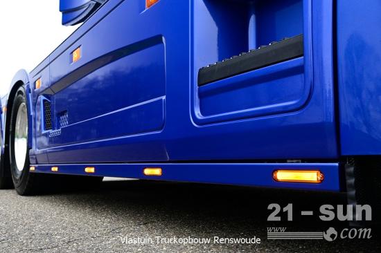 除了沃尔沃FH16外,斯堪尼亚S系列也是长头车改造的常客,该车隶属荷兰的一家建筑行业运输公司,可以用来运输大型的建筑设备,因此在动力上也是采用了大马力的V8机器,最大可输出580马力。