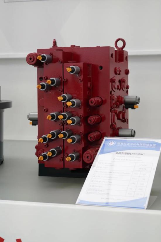参观过程中,宋飞董事长重点对全电控阀及超大挖行走马达进行了介绍,其中20吨级和65吨级全电控阀具有能量回收和进出油口独立控制的独特技术,智能高效、节能降耗。65-135吨挖掘机用行走马达为国内首创,成为各主机厂的首选产品。