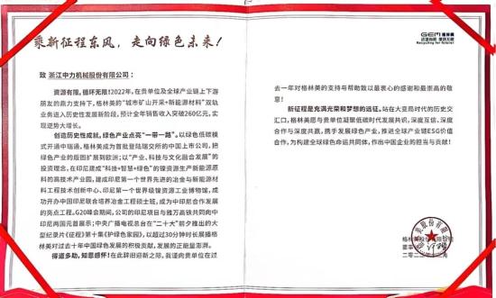 中力收获格林美来函致谢!