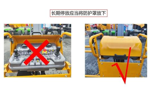 ●设备在露天停放时建议关闭平台防护罩,保护上台操作面板