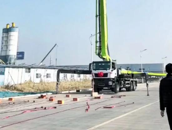 此次交付的“凌云”52米泵车承袭轻量灵活、稳定可靠、经济高效等极致“基因”。两级伸缩前支腿,前跨9.6米,在同米段泵车占地面积更小,场地适应性更好。