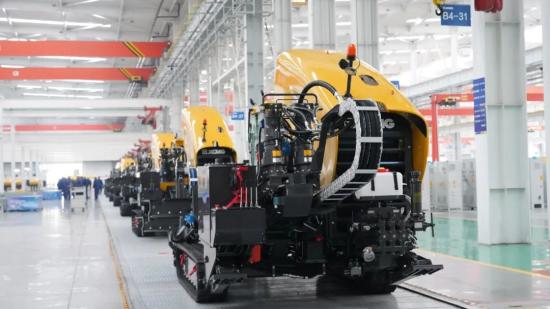 在徐工基础工程机械智能制造基地,设有旋挖钻机、水平定向钻机、掘进机等智能生产流水线,其中非开挖车间配置三条生产线,主要生产水平定向钻机、顶管机和泥浆泵站等全系列产品,其中,水平定向钻机的市场占有率超过50%,多年保持行业第一。