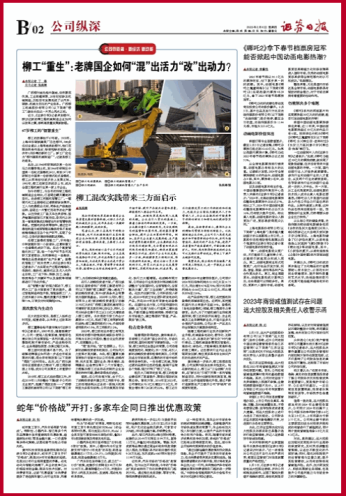 2月6日,《证券日报》刊发《柳工“重生”:老牌国企如何“混”出活力“改”出动力?》《柳工混改实践带来的三方面启示》两篇文章,深度解析柳工这家老牌工程机械制造企业如何以改革之翼,扬帆高质量发展新航程。
