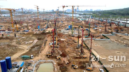 "三一军团"领衔攻坚:项目最高峰时,80余台旋挖设备昼夜轰鸣,其中三一旋挖钻机占比近半(40台),形成绝对主力阵容。