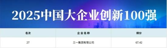 其中,三一在“中国大企业创新100强”和“中国跨国公司100大”中分列第27位和第42位,为行业最高排名。