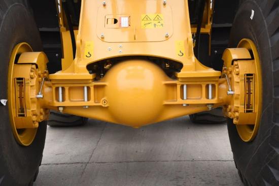 加强驱动桥桥壳优化设计,横断面加大,轮边支撑轴承加大,前桥承载能力可达40t,后桥承载能力更强,加强型主减及加强型轮边寿命提升30%,传动轴采用端面齿结构,防止螺栓受剪切力,传动更可靠。