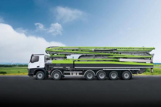 该泵车采用全流程安全作业技术,将行驶、支泵、布料功能集于一体,确保施工安全无忧。创新的回转及垂直双减振技术,使施工过程中臂架振幅大幅减小,稳定性显著提升。智能化的操控系统实现了一键操控及一键展收臂功能,操作人员仅需操控一个手柄即可精确控制臂架末端,轻松完成任意平面、直线和曲线运动,极大提升了操作便利性和施工精度。