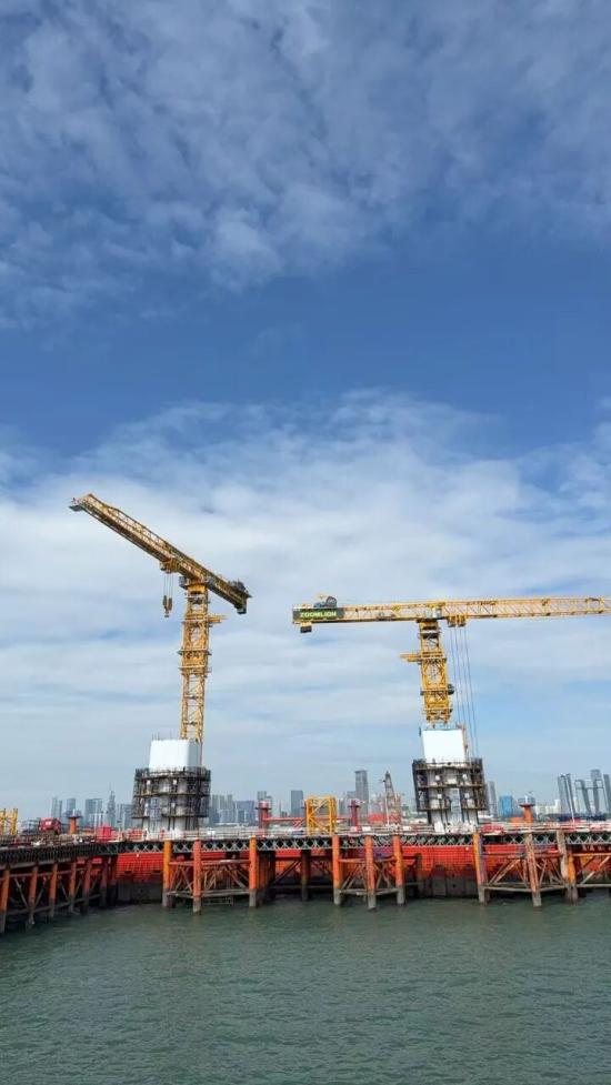 ▲中联重科R3200-160塔机在厦金通道项目施工