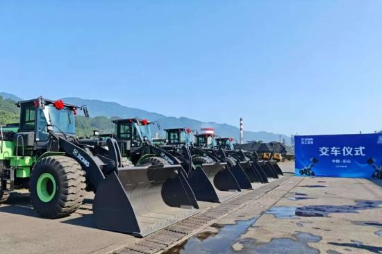 交付现场,数台XC968-EV如钢铁卫士整齐列队,迎接客户检阅。交付后该批整机将投入到钢铁生产的各主要环节,以零排放的绿色化优势助力可持续高质量发展。