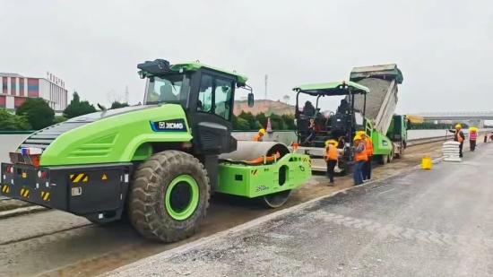 作为行业最早研发、生产道路施工新能源装备的企业,徐工推出的XS265HEV 混动压路机 + RP905HEV 混动摊铺机组合,已成功应用于江西市政道路建设,为当地带来绿色、高效的全新施工模式。