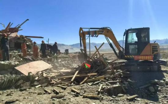 西藏定日县救援现场:三一挖机正在清理倒塌废墟