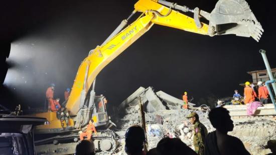 几乎同期,缅甸曼德勒发生7.9级强震。三一救援队迅速组建30余人队伍,携带10多台设备及3.5吨急需物资跨国驰援,并主动对接中国国家救援队,提供机械与燃料支持,展现出中国民间救援力量的国际视野与人道精神。