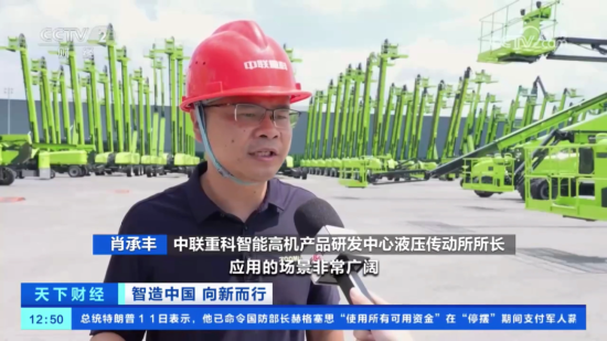 近日,央视财经《智造中国 向新而行》栏目走进中联智慧产业城高空机械园,深度感受我国高端装备产业如何以“智”为刃突破技术壁垒,以“链”为脉畅通全球市场。