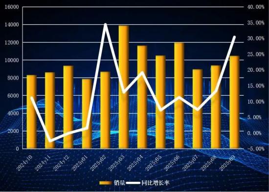 纳入协会统计的装载机制造企业9月份共计销售各型号装载机10530台,达到最近12年的同月次高水平,同比增长率则高达30.50%,为过去34个月的次高水平(仅次于今年2月份的34.41%)。