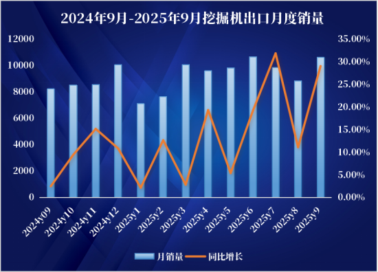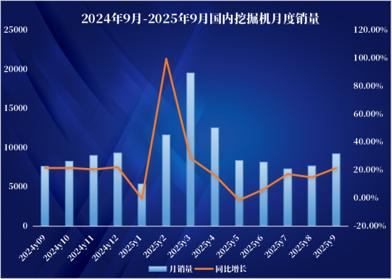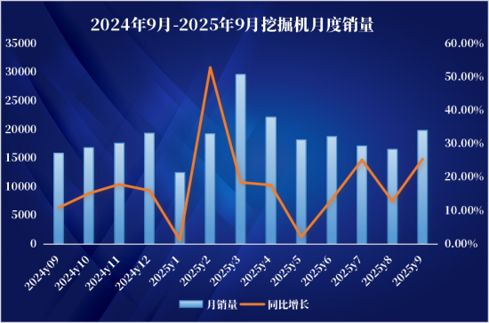 据中国工程机械工业协会数据统计,2025年9月销售各类挖掘机19858台,同比增长25.4%。这一增长得益于国内政府投资的强力托举、设备更新政策的持续发力以及海外市场的旺盛需求,共同推动了行业景气度的显著回升。