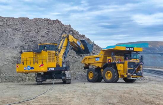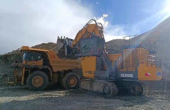 在开采环节,徐工XE2000E电动液压挖掘机凭借强悍性能担当先锋。该设备配备12m³标准斗容,通过优化液压系统与专属“矿山模式”,既提升作业效率又降低操作门槛。其矿山作业数据表现卓越:单台月均运行超540小时,可动率稳定在92%-93%,更曾实现整月“零停机”纪录。