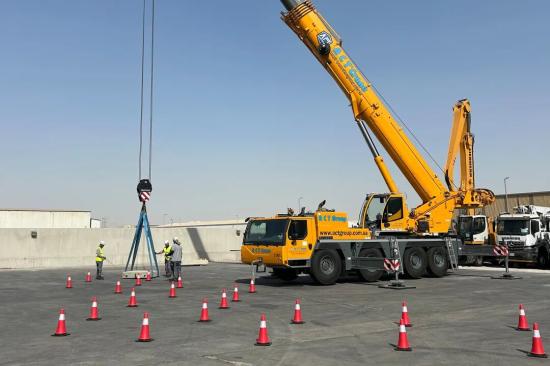 在沙特阿拉伯达曼举行的预选赛中,参赛者使用LTM 1120-4.1起重机挑战障碍赛道——要将混凝土块安全地通过路线,精准与技巧缺一不可