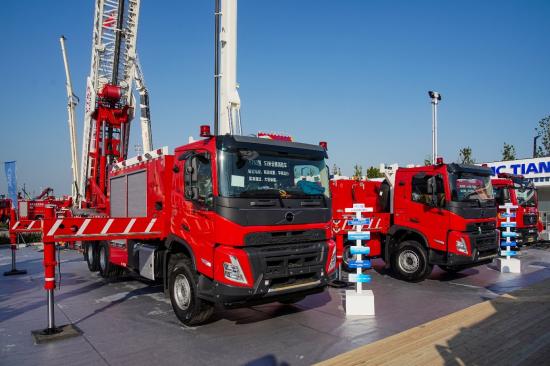 在本次展会上,三一重工、徐工集团、中联集团、中集天达等上装企业,携基于沃尔沃底盘打造的登高平台消防车、大跨度举高喷射消防车等车型惊艳登场。这些设备卓越的性能背后,深度融合了沃尔沃卡车的核心技术优势,成为展会焦点之一。