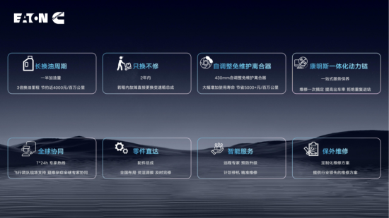 在服务价值体验层面,伊顿康明斯中国始终以“帮大家少花钱、少费心、多跑车”为目标。变速箱换油周期长达5年/60万公里,离合器自调整免维护,显著降低使用成本。公司提供2年不限里程质保,箱内故障执行“只换不修",有效减少停工时间。7x24小时专家热线与飞行服务提供快速响应,同时通过远程监测提前预判风险,实现从“被动修"到“主动防”的转变。长换油周期帮助用户每百万公里节省约一半换油成本,配合计划维修与零件快速调拨,全程保障车辆高出勤与收益稳定。