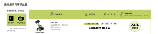 与燃油装载机相比,纯电动装载机最大的优势在于“以电代油”,显著降低运营成本,节能减排效果显著。