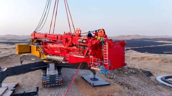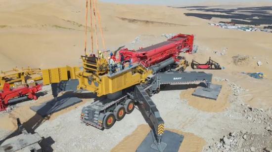 当SAC30000T的部件被二十多台重型卡车运抵现场时,在苍茫的沙海中,像一艘即将组装的星际战舰的零件。脚下尽是松软的沙地,头顶是变幻莫测的天空,在沙漠里组装这么一个庞然大物,本身就是一门学问。
