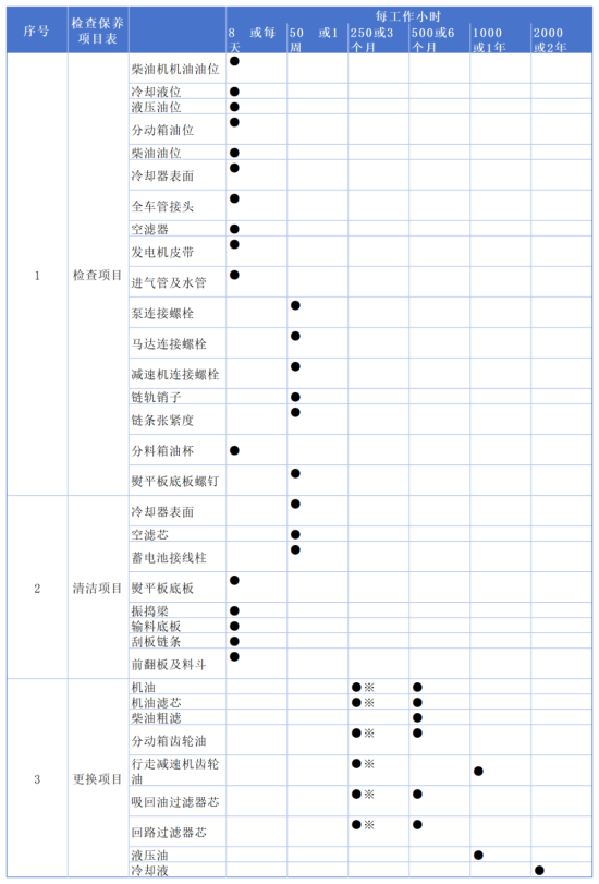(●” 代表日常保养 , ●※“ 代表首次保养)