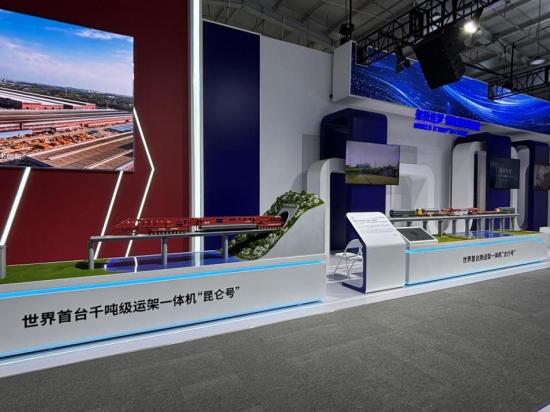 世界首台千吨级运架一体机“昆仑号”模型前,其在福厦高铁等10余条重点线路中的应用成果介绍引发广泛关注,作为中国高铁架梁新速度的代表,其高效作业能力让参观者直观感受到跨域交通建设的“中国效率”。