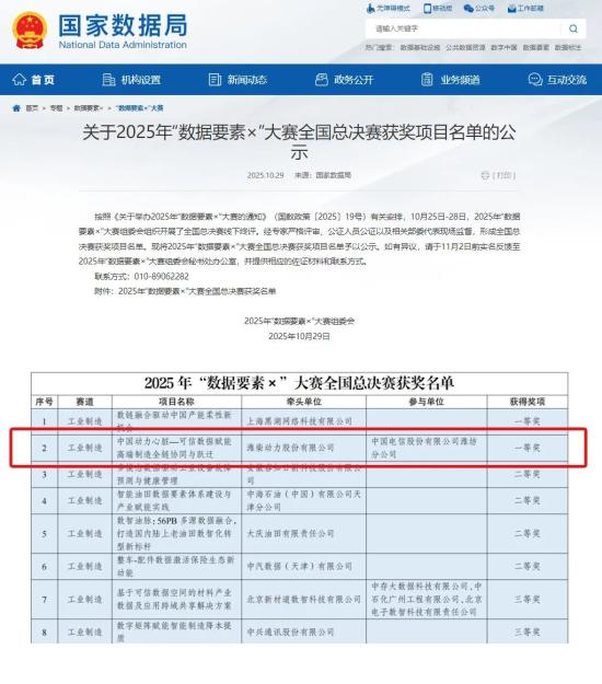 日前,2025年“数据要素×”大赛全国总决赛圆满落幕。潍柴《中国动力心脏—可信数据赋能高端制造全链协同与跃迁》项目,斩获工业制造赛道一等奖,成为中国内燃机行业唯一获此殊荣的企业,树立了数据要素赋能生产制造的标杆,彰显潍柴科技型公司“链主”实力。