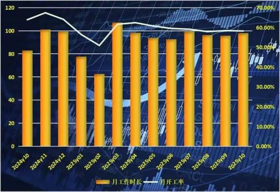 从开工情况看,2025年10月工程机械主要产品月平均工作时长为80.9小时,同比下降9.03%,而装载机平均工作时长达到98小时,同比去年82.9小时提升明显;工程机械主要产品月开工率为55%,同比下降10.1个百分点,装载机开工率为58.2%,同比下降5.7个百分点。