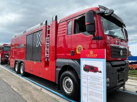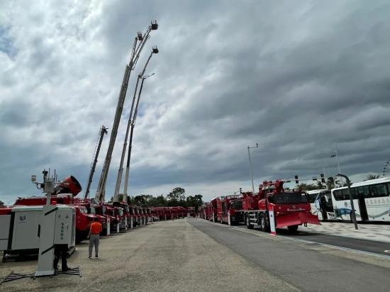 在海南三亚,2025“一带一路”自然灾害防治和应急管理部长会议如期举行。多台徐工应急救援装备整齐列队,与会代表现场观摩演示。行业首款子母式正负压排烟车PY10G2、“百变王者”多功能应急救援消防车JY20G2以及“治水先锋”远程供排水抢险车GP40X,展现多场景救援解决方案。