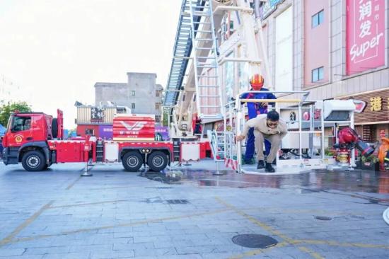 在东莞,清溪镇“119”消防宣传月的演习活动正紧锣密鼓的开展着。随着现场警笛骤响,高层建筑“突发火情”扣人心弦,消防救援人员迅速响应,将徐工34米登高平台消防车精准升至商场顶层,成功营救“被困人员”。