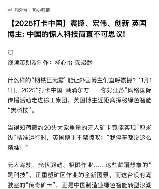 这次“出圈”传播,不仅向全球生动推介了一个创新、智慧、绿色的徐工,更让“中国制造”的崭新形象,借由世界网民的共同见证,变得更加可信、可爱、可敬。