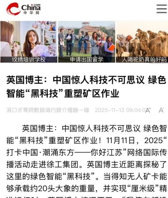 英国博主近距离观察了荷载重量相当于20头大象的无人矿卡,当得知这一庞然大物竟能实现“厘米级”精准运行时,他幽默地感慨:“我停车都没这么精准!”