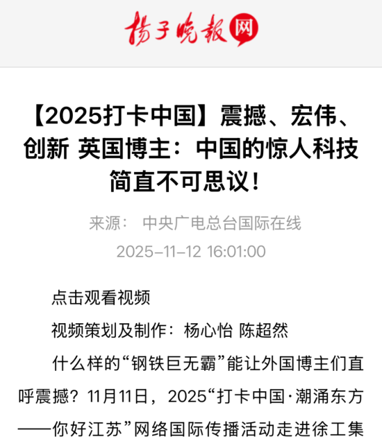 2025“打卡中国”活动由国家互联网信息办公室网络传播局指导,活动以“潮涌东方”为年度主题,重点围绕“潮”字多维解读,全方位展示前沿科技浪潮、新质生产力崛起浪潮、实体经济促进高质量发展浪潮与先进制造业升级浪潮,让世界看见中国发展的澎湃动能。