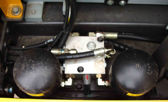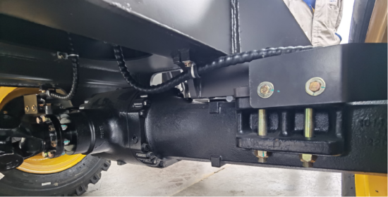 该机配备行走马达驱动变速箱,最高时速达36km/h,前2后2档位均含高低速,支持无级变速,路况适应性极强。独特的前桥双平衡液压悬挂系统,确保四轮始终贴地,越野与脱困能力出色;作业时平衡油缸自动锁定,有效抑制车身晃动,保证作业稳定性。
