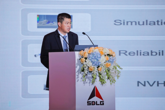 山东临工副总经理、国际营销公司总经理王晓辉作报告