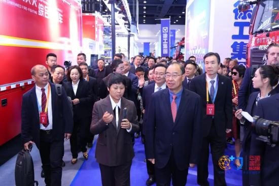 应急管理部、国家消防救援局、中国地震局等系统领导莅临徐工展区视察指导。