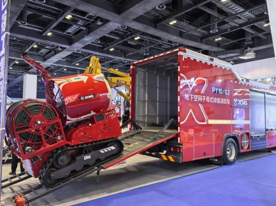 展会现场,徐工展区人气高涨,多功能应急救援车、行业首款子母式正负压排烟车、“钢铁螳螂”步履式挖掘机等高精尖装备吸引海内外观众驻足打卡。