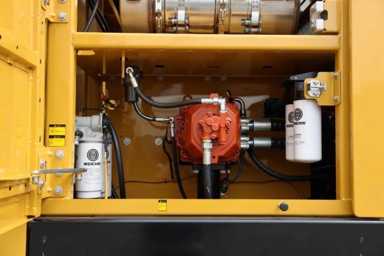 搭载潍柴WP10.5H发动机,寿命高达30000小时;机滤、燃滤远传,维护保养便利,维护周期500h,标配燃油水寒宝;大容量油底壳,满足35°倾角要求和500小时换油周期;油耗更低,效率更高。
