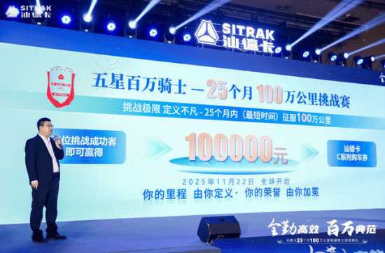 2025年11月22日,“全勤高效 百万典范——汕德卡25个月100万公里荣耀骑士颁奖典礼”在中国·衡水盛大启幕。本次盛典是对再创百万荣耀奇迹的礼赞,亦是对汕德卡再赴高效传奇的期许。行业精英代表齐聚一堂,共同见证汕德卡G7S燃气车创下“25个月100万公里”的行业新纪录。