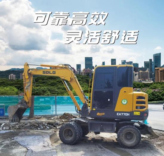 7吨级的EA770H则凭借其出色的灵活性与紧凑设计备受青睐。EA770H采用紧凑型设计,转弯半径小 ,配合可旋转底盘,能够在老旧小区改造、地下管网施工等空间受限的工况中灵活穿行。搭载国际知名品牌液压与传动系统,EA770H在保持高效作业的同时,兼具低故障率与高经济性,广泛应用于市政、水利、农林等多样化施工环境。驾驶室采用高强度框架结构,视野开阔,密封性与抗冲击性能较前代有显著提升,配合减震座椅,作业舒适性大大提高,有效缓解长时间作业疲劳。