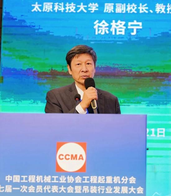 主旨演讲环节,太原科技大学原副校长徐格宁教授以《起重机械绿色化关键技术进展与未来展望》为题展开专业分享,从标准、材料、结构、能效等技术层面为行业产品升级提供系统研究思路。